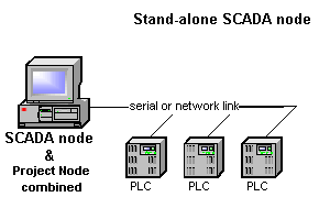 This standalone PC would have both the SCADA node software and the Project Node software installed. The Project Node software is the configuration tool. A web browser must be installed on the system to use for the configuration tool (Project Manager). A TCP/IP Service must be installed. The Loop back TCP/IP service in Windows will work (even without a network card). IIS must also be installed as part of the configuration tool.