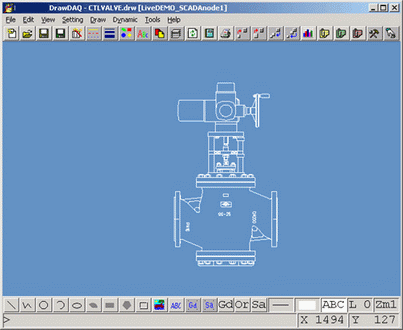 The Open DXF imports an AutoCAD Release 13 compatible DXF file into Advantech WebAccess/SCADA. The DXF File becomes fully editable. Only lines are imported, no colors, no blocks are imported.