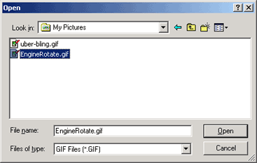 5c. Select the next bitmap (they should be numbered sequentially, 002, 003, etc.). For example select EngineRotate.gif.002.bmp