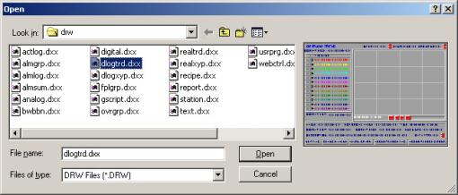 Draw users can call up any file in the \DRW subfolder if they know the exact file name and extension. For example, to modify the alarm summary, enter ALMSUM.DXX
