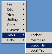 note - Using the Right Click Menu in DRAW or the upper menu brain DrawDAQ to start the Script editor will make the Script independent of the Graphic Display and any Local Tag files. You will not be able to browse Local Tags using this method (LocTag is grayed out).