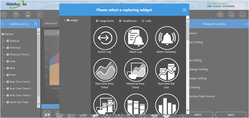 For WebAccess/SCADA V8.3, Dashboard update to version 2.0, over websocket to do data transfer from WebAccess/SCADA, so when using Windows 7 or Windows Server 2008, the Dashboard port needs to be set in different windows OS. Using Windows 8, Windows 10 or Windows Server 2012 or 2016, you can still use 80 port for Dashboard.