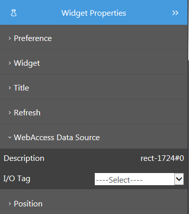 The animation I/O measuring point setting is located in the dashboard edit property page; first, after editing the dashboard, click "WebAccess data source" in the widget property page.