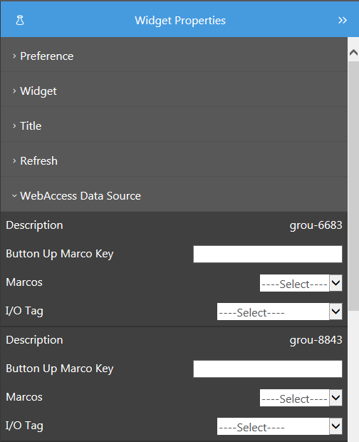 l First select the dashboard edit and edit widget; click the WebAccess data source in the widget property page to set the macro instruction.