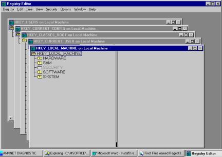 The Registry32 editor is organized by "Trees". It may be hard to see the forest for the trees. Note that each "Tree" looks like a separate dialog box.