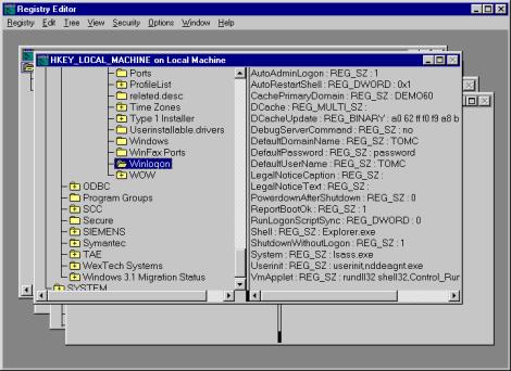 Figure 23.2Winlogon registry showing AutoAdmin Logon and related keys