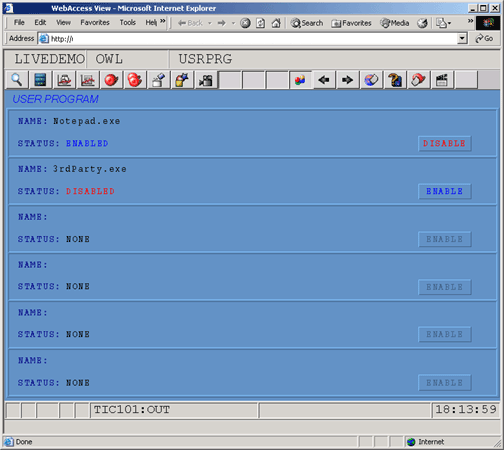 User Program Status is intended to start or stop a Visual C or Visual Basic program interfacing to Advantech WebAccess/SCADA SCADA node using our User Program API (a library of DLLs).